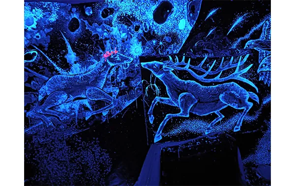 ライブペイント大きなキャンバスに絵を描いていくライブペイントを行います。昼は色とりどりの動物達、夜は闇に輝く幻想的な光の絵が完成していく様子をご覧頂けます。お客様もお好きな絵を描いて自由にご参加いただけますので、是非お子様やご友人の皆さんとお楽しみください。Hanacoと一緒に一つの巨大な絵を完成させましょう!