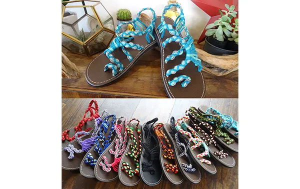 アパレル雑貨販売リピーター続出!カラフルで丈夫なパラコードサンダルを特別価格で販売いたします。アウトドア用ロープを使った手編みです。吸い付くようなフィット感で歩きやすく、ソールは2層のウレタン構造により、疲れにくく、足も痛くなりません。試着大歓迎です!