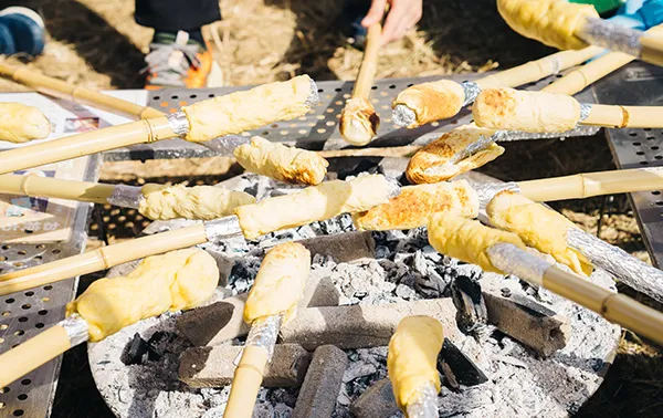 パン作りキャプテン鹿野 淳と仲間によるパン作りのワークショップ。練って捻った小麦を焚き火にかけて、世界に一つだけの素敵に美味しいパンを作って、食べてみよう!!