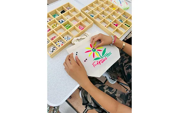 ステンシルアクリル絵の具で、世界に一つだけのポーチをつくるワークショップです。