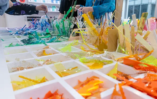 ごちゃ盛りキーホルダー工場から出てきたアクリルの端材や廃材からできたパーツを選んでキーホルダーを製作しよう!